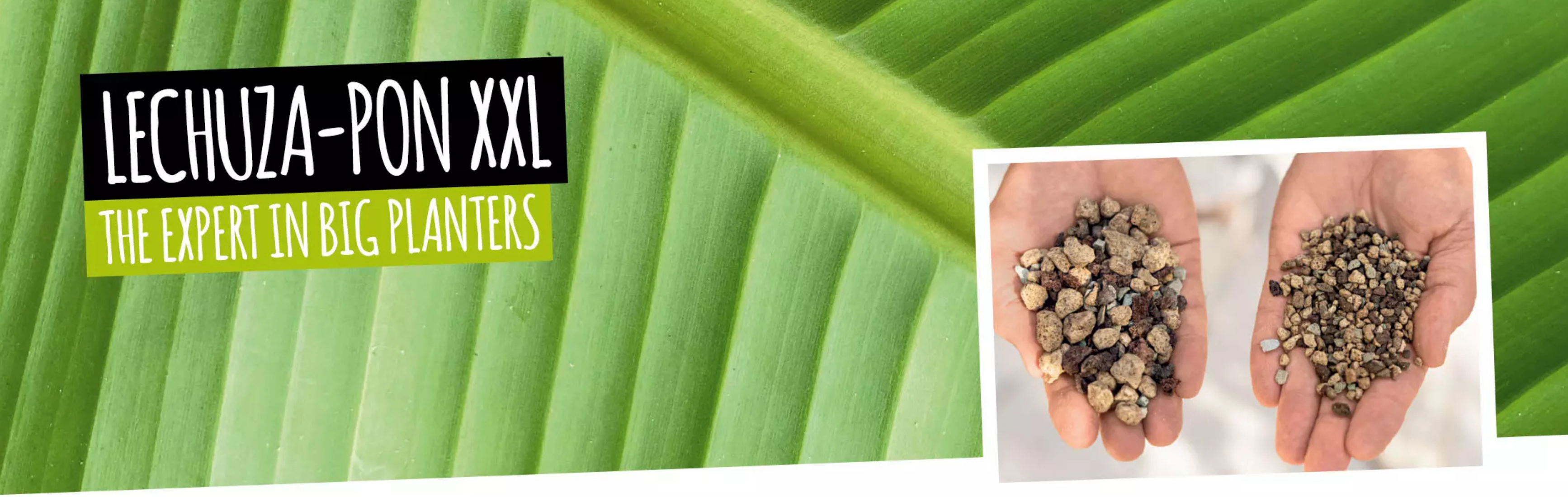 The extra coarse, purely mineral plant substrate LECHUZA-PON XXL is perfect for big planters and gives larger potted plants the stability they need. The high volume stability means that the substrate does not compress and retains its air-permeable structure. The mineral substrate comprises pumice, lava and zeolite, which function as water and nutrient reservoirs supplying the plant as needed. Waterlogging is avoided and root rot is prevented thanks to the structurally stable composition.