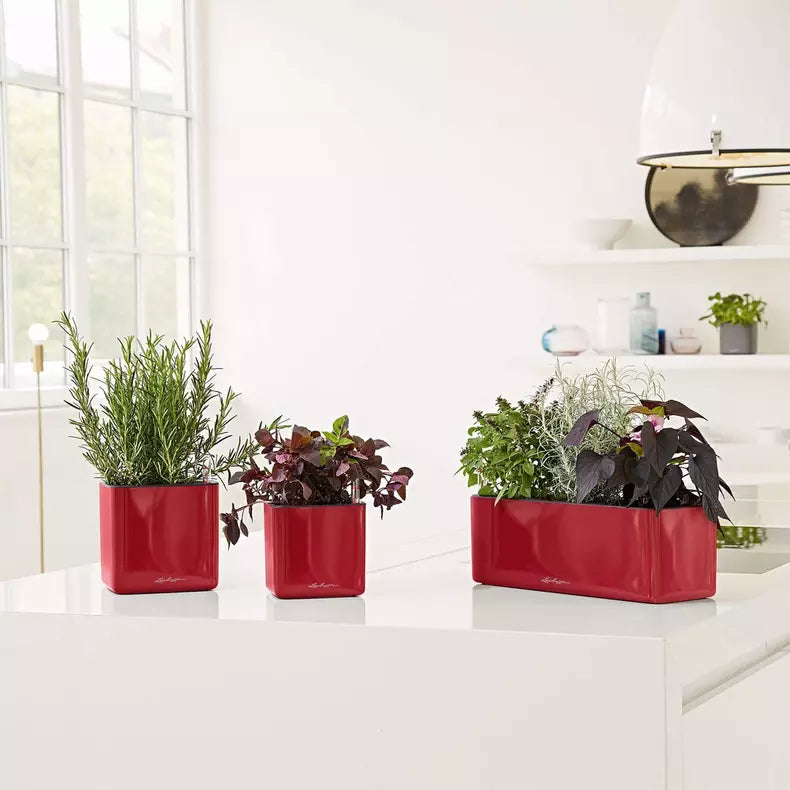 Las macetas LECHUZA QUADRO y CUBICO en color rojo combinan diseño moderno, elegancia y funcionalidad, convirtiéndose en el regalo perfecto para expresar amor y buen gusto.