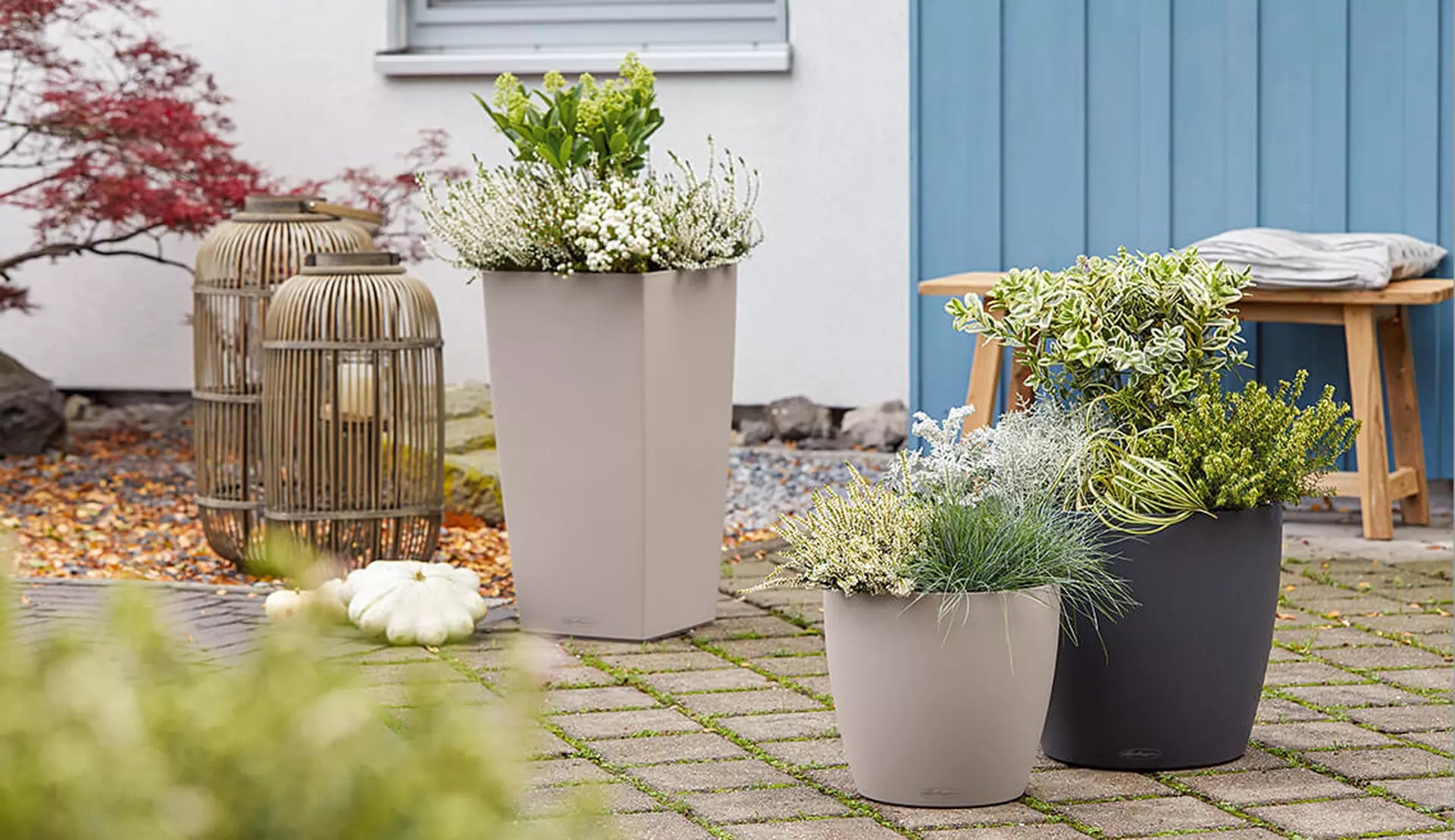 Las macetas de la colección Color de LECHUZA, en tonos naturales y grises, combinan modernidad y elegancia para adaptarse a cualquier estación. Son el complemento perfecto para la decoración, realzando la belleza de las plantas de temporada. Con flores otoñales en tonos anaranjados o plantas de interior en matices de bayas, estas jardineras añaden fácilmente un toque cálido y otoñal a cualquier espacio.